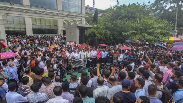 এনবিআর চেয়ারম্যানকে অপসারণের দাবিতে পূর্ব ঘোষিত কর্মসূচি অনুযায়ী গতকাল সকাল থেকেই জড়ো হতে থাকেন দেশের বিভিন্ন কর, ভ্যাট ও কাস্টম অফিসের কর্মকর্তা–কর্মচারীরা। সকাল ৯টার পর রাজধানীর আগারগাঁওয়ে এনবিআরের প্রধান কার্যালয় রাজস্ব ভবনে প্রবেশ আটকে দিলে সামনেই অবস্থান নিয়ে তাদের কর্মসূচি পালন করতে থাকেন।