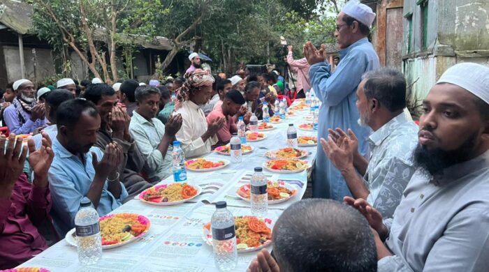 ইফতার মাহফিরে বক্তব্য দেন পাথারিয়া গ্রামের প্রবীণ মুরব্বি নুরু মিয়া, ইউনিয়ন বিএনপির সদস্য আঙ্গুর মিয়া।